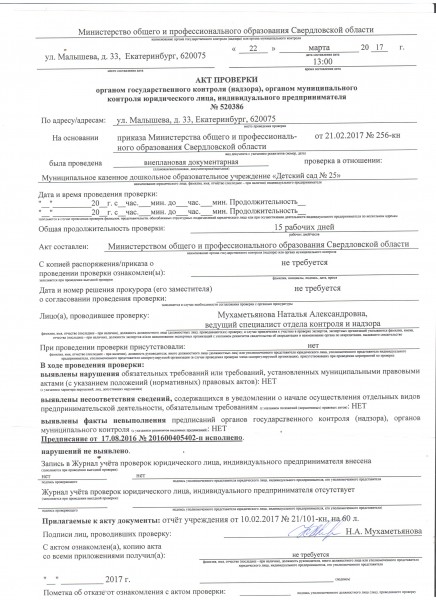 Приказы на зачисление детей в МАДОУ "Детский сад № 25"
